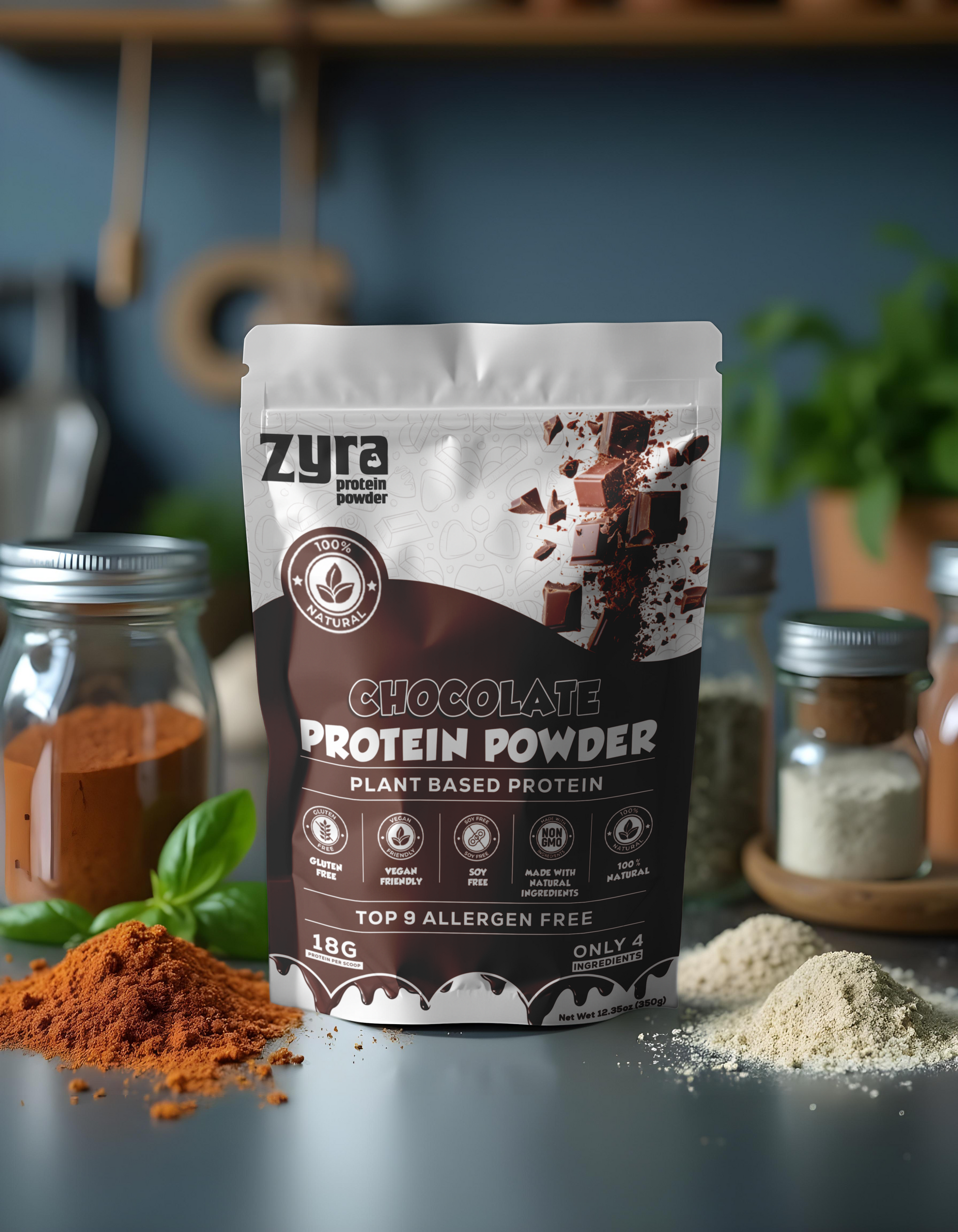 Zyra Protein Powder is packed with 18g of protein per serving, which is everything you need to start your day off right. Our chocolate powder uses natural cocoa powder.
